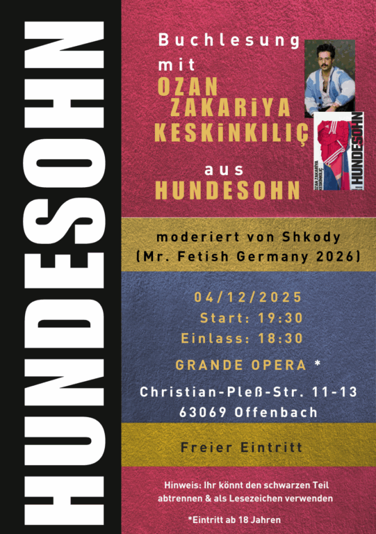 Die Aidshilfe Offenbach freut sich wahnsinnig dank der Unterstützung des Förderprogramms „Demokratie Leben!“ Ozan Zakariya Keskinkılıç für eine Lesung aus seinem Debütroman „Hundesohn“ einladen zu können.