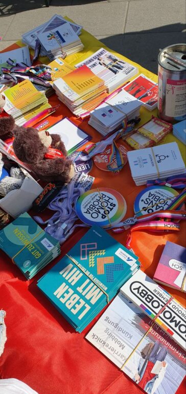 Dieses Jahr besteht allerdings eine Besonderheit: An der Flaggenhissung beteiligt war der am Anfang des Jahres gegründete Netzwerk OFfenQueer, ein Zusammenschluss aus gemeinnützigen Einrichtungen, Kommunalpolitiker*innen und Privatpersonen. Die AIDS-Hilfe Offenbach ist Mitbegründer des Netzwerkes. Die Flaggenhissung zum 17.05. war die erste richtige Veranstaltung des Netzwerks. Die Hissung der Flagge wurde als kleines Get-Together genutzt und von einem Infotisch der AIDS-Hilfe begleitet. Es gab kostenlose Brezeln und Getränke. Der Abend fand einen schönen ausklang mit Live-Musik im Waggon am Kulturgleis am Mainufer.